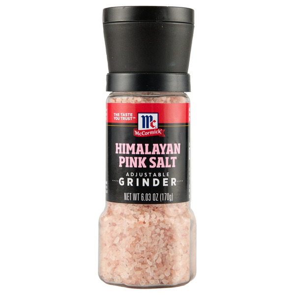 McCormick® Himalayan Pink Salt will add a burst of pink color and bold taste, making it a must-have when seasoning any dish. A simple twist of the grinder, it releases bold flavor directly into salads, eggs, seafood and chicken. McCormick Himalayan Pink Salt Grinder gives meals a crisp, clean flavor without any prep. Simply grind the salt on any dish, and you have a perfect replacement for both table and kosher salt that will liven up any meal. Use on vegetables to enrich the flavors or to put the finishing touch on some mean margaritas. You can even add to desserts for a salty, sweet taste the whole family will love. The convenient built-in grinder allows you to adjust to fine salt, medium salt or coarse salt to suit your taste or recipe.