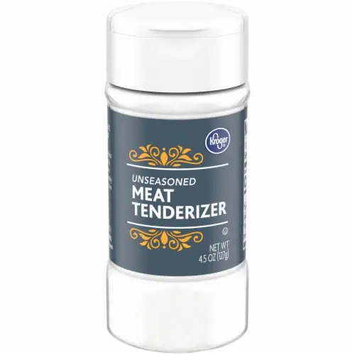 McCormick® Unseasoned Meat Tenderizer makes tougher, budget-friendly cuts of meat easier to cook and eat. It contains bromelain, a natural tenderizer from pineapple, that breaks down the meatâs tough connective tissues. Perfect on beef, pork or poultry, McCormick Unseasoned Meat Tenderizer is quick and easy to use. Simply moisten surface of meat with water. Sprinkle Tenderizer evenly over meat (1 tsp. per 1 lb.) then pierce the meat with fork at 1/2-inch intervals. No marinating time is needed-...