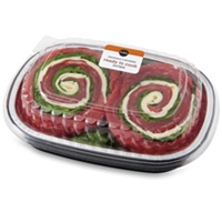 cheese & uncured bacon beef flank pinwheel (beef flank steak, cream cheese (pasteurized milk, pasteurized cream (MILK), cheese cultures, salt, guar gum, carob bean gum, xanthan gum), pepper jack cheese (cultured milk, water, cream (MILK), jalapeno peppers, red bell pepper, sodium phosphate, salt, enzymes), cheddar cheese (MILK, cheese cultures, salt, enzymes, water, cream (MILK), lemon juice concentrate, salt, pectin, paprika, beta carotene), natural uncured bacon topping (NO NITRATES OR NITRITES ADDED EXCEPT FOR THOSE, NATURALLY OCCURRING IN CELERY POWDER AND SEA SALT, pork, water, salt, sugar, cultured celery powder, sea salt, natural flavor)), seasoned green beans (green beans, garlic herb basting oil (sunflower oil, parsley, thyme, natural garlic flavor (CONTAINS:, canola oil))), skin on baby potato halves (potatoes, rapeseed oil, salt, disodium diphosphate, dextrose, white pepper extract)