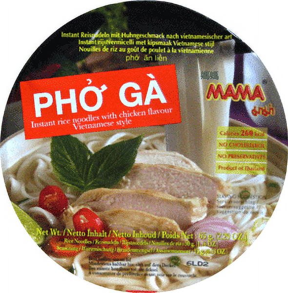 Grilled Chicken Breast (Chicken Breast, Water, Canola Oil, Seasoning [Salt, Sugar, Onion Powder, Spices, Garlic Powder, Paprika], Chicken Base [Chicken, Chicken Stock, Salt, Cane Sugar, Rendered Chicken Fat, Onion Powder, Potato Flour, Turmeric, Spice Extractives {Contains Celery}], Corn Starch, Black Pepper), Rice Noodles (Rice, Tapioca Starch), Bok Choy, Pho Vegetable Soup Base (Vegetable Juice Concentrates [Onion, Mushroom, Carrot, Celery, Garlic], Maltodextrin, Sugar, Salt, Yeast Extract, Natural Flavor, Xanthan Gum), Carrots, Sriracha Sauce (Red JALAPEÃO Pepper, Water, Sugar, Salt, Garlic, Distilled Vinegar, Xanthan Gum, Pepper Sauce [Distilled Vinegar, Red Pepper, Salt]), Green Onion, Cilantro, Thai Basil.