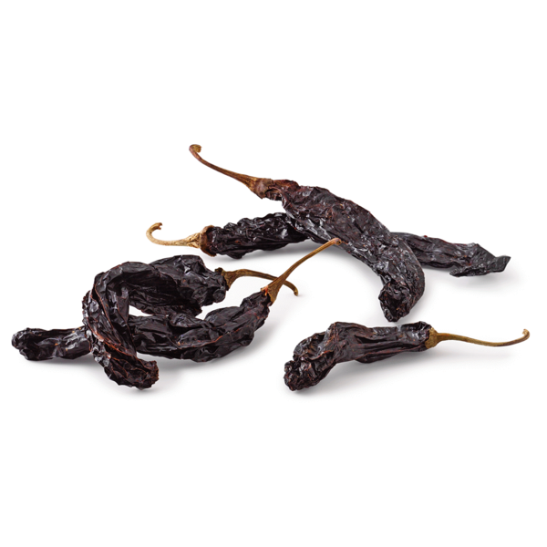 The most commonly used dried chile in Mexico, the Ancho is a dried pablano chile. Wide on top (ancho means wide, in Spanish), then tapering to a round end, the Ancho measures 3-5 inches long. This wrinkled, brick red chile is the sweetest of the dried chiles and essential for making sauces and moles.