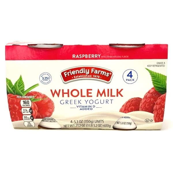 Friendly Farms Whole Milk Raspberry Greek Yogurt 4 pk