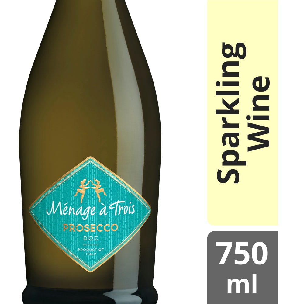 Menage a Trois Prosecco Sparkling Wine is fabulously fun-loving from the first sip to the last. Refreshing citrus and bright green apple flavors dance across your palate leading to a crisp, clean finish. In the glass, delicate bubbles rise to the surface and tickle your nose. This sparkling white wine received 91 Points from the Tasting Panel in May 2023. Sip a glass of this sparkling white wine with a fresh fruit tart or any other fabulous dessert or share a bottle with someone special under the...