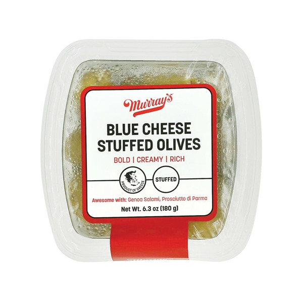 Olives, Water, Bleu Cheese (Cultured Milk, Whey Protein Concentrate, Cream, Whey, Flavor, Skim Milk, Salt, Sodium Phosphate, Sodium Alginate, Xanthan/Guar Gum, Enzymes), Sea Salt, Calcium Chloride, Lactic Acid, Sodium Metabisulfite (Added as a color stabilizer). Contains Milk.