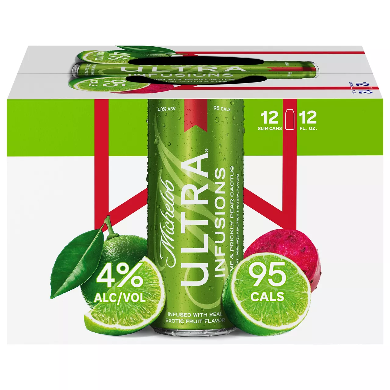 Michelob ULTRA Infusions Lime & Prickly Pear Cactus Light Beer is a superior fruit beer brewed free of artificial colors and flavors. This fruit flavored beer is a light lager that's infused with lime peels and prickly pear cactus for an exotic fruity aroma with a clean citrus finish. Each 12 fluid ounce serving contains 95 calories and 4% ABV. Take this prickly pear cactus and lime beer along for all of your summer fun, from beach days to backyard barbecues, or sip it year-round to bring back the...