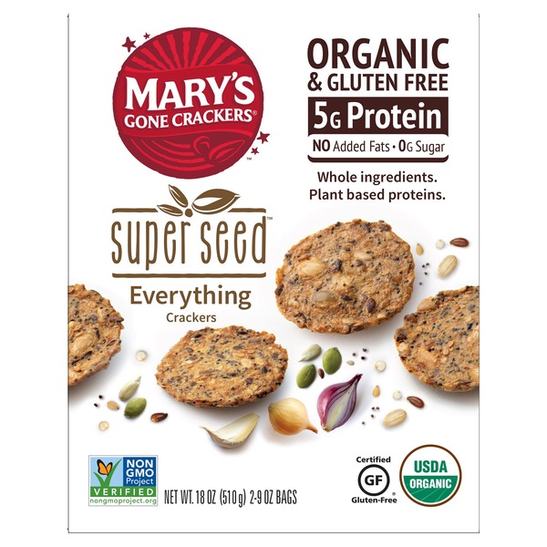 Brown Rice Flour, Elven Free Oats, Potato Granules, Potato Starch, Corn Flour, High Oleic Sunflower Oil (Tocopherols, Rosemary Extract, and Ascorbyl Palmitate Added as an Antioxidant), Rice Flour, Cane Sugar, White Toasted Sesame Seeds, Molasses Granules (Syrup, Molasses), Contains Less than 2% of: Amaranth, Baker's Yeast, Black Sesame Seeds, Spice Blend (Poppy Seeds, Caraway Seeds, Sesame Seeds, Dehydrated Onion), Millet, (Quinoa Seeds, Poppy Seeds, Sea Salt, Leavening (Monocalcium Phosphate, Sodium Acid Pyrophosphate, Baking Soda, Sugar, Whey Protein Concrete, Sunflower Lecithin, Salt, Garlic Powder, Natural Butter Flavor, Caraway Seeds.