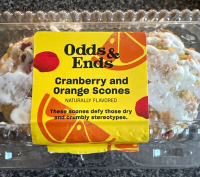SCONE (ENRICHED WHEAT FLOUR [WHEAT FLOUR, NIACIN, REDUCED IRON, ASCORBIC ACID AS A DOUGH CONDITIONER, THIAMINE MONONITRATE, RIBOFLAVIN, ENZYME, FOLIC ACID], SUGAR, VEGETABLE OIL SHORTENING [PALM OIL, SOYBEAN OIL], EGG, CRANBERRIES, ORANGE PURÃE, BUTTER [CREAM, SALT), LEAVENING BLEND [SODIUM ACID PYROPHOSPHATE, SODIUM BICARBONATE, CORN STARCH, MONOCALCIUM PHOSPHATE, CALCIUM SULFATE], WATER, SALT, ARTIFICIAL FLAVOR), GLAZE (ICING SUGAR [SUGAR, CORN STARCH], WATER, CORN SYRUP, GUAR GUM, MODIFIED POTATO STARCH, XANTHAN GUM).' '
