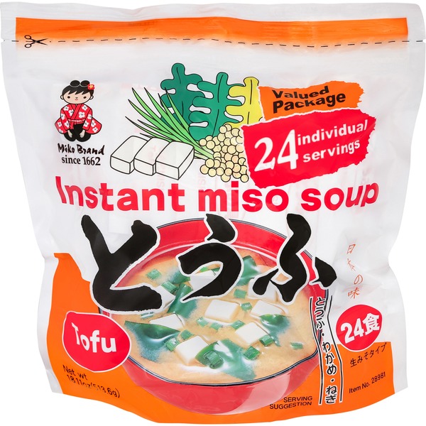 Instant soybean paste soup. 3 packets inside. No MSG added. All natural. Made with organic miso. Vegetarian. Non-GMO soybeans. No cholesterol. No saturated fat. Instant soybean paste soup with real tofu. Naturally Delicious: Just like in your favorite Japanese restaurant, now you can enjoy the authentic taste of Japanese Miso Soup quickly and easily with Mishima's instant miso soups. Mishima uses only the highest quality ingredients in our soups to give you the best taste. Our delicious white miso...