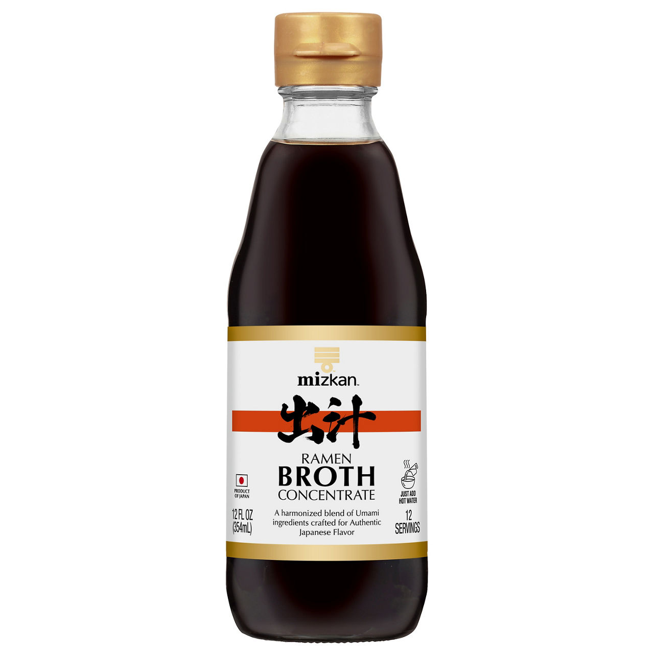 RAMEN BROTH CONCENTRATEMizkan Ramen Broth Concentrate allows you to enjoy delicious umami taste in all your favorite ramen noodle soup recipes! By simply adding 1-cup of hot water per 2-tablespoon serving, you can taste traditional dashi broth made with tuna broth, scallop extract, dried sardines and anchovy extract. This 12 fl. oz. bottle of Mizkan Ramen Broth concentrate contains 12 delicious servings of pescatarian friendly noodle broth. With Mizkan you can bring the Flavor of Japan to your kitchen....