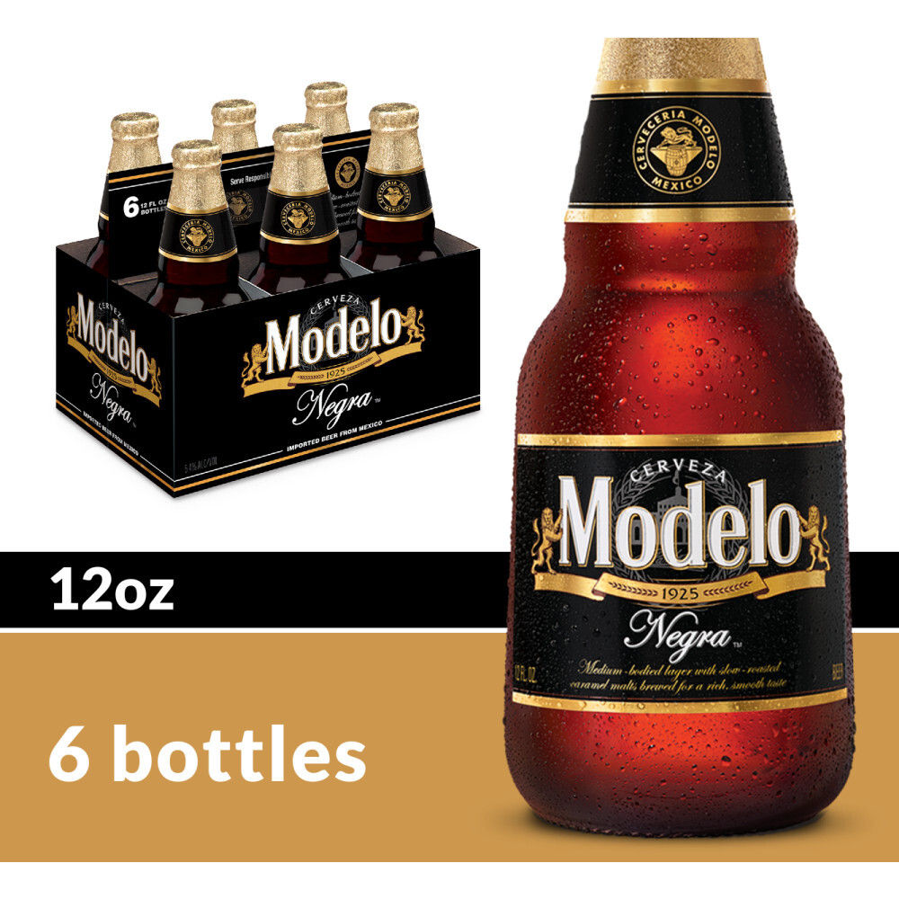 Modelo Negra Amber Lager Mexican Import Beer, 6 Pack 12 fl oz Bottles, 5.4% ABV 6 pack of 12 fl oz bottles of Modelo Negra Mexican Import Beer Mexican lager style beer with bold flavor, remarkably smooth taste, and minimal hops bitterness Cerveza that pairs well with Mexican dishes, grilled meats and vegetables, or Asian food Balanced, medium-bodied Modelo beer with a light finish Munich Dunkel-style dark lager beer brewed in Mexico Mexican beer perfect for enjoying with friends and at backyard barbecues Dark lager beer brewed longer to enhance flavor Dark malt beer made with slow-roasted caramel malts Mexican beer containing 5.4% alcohol by volume Imported beer 6 pack of 12 oz beer bottles for enjoying with a variety of meals Brewed since 1925, Modelo Negra is the beer that fights to defy expectations Check out more from Modelo at our Brand Page