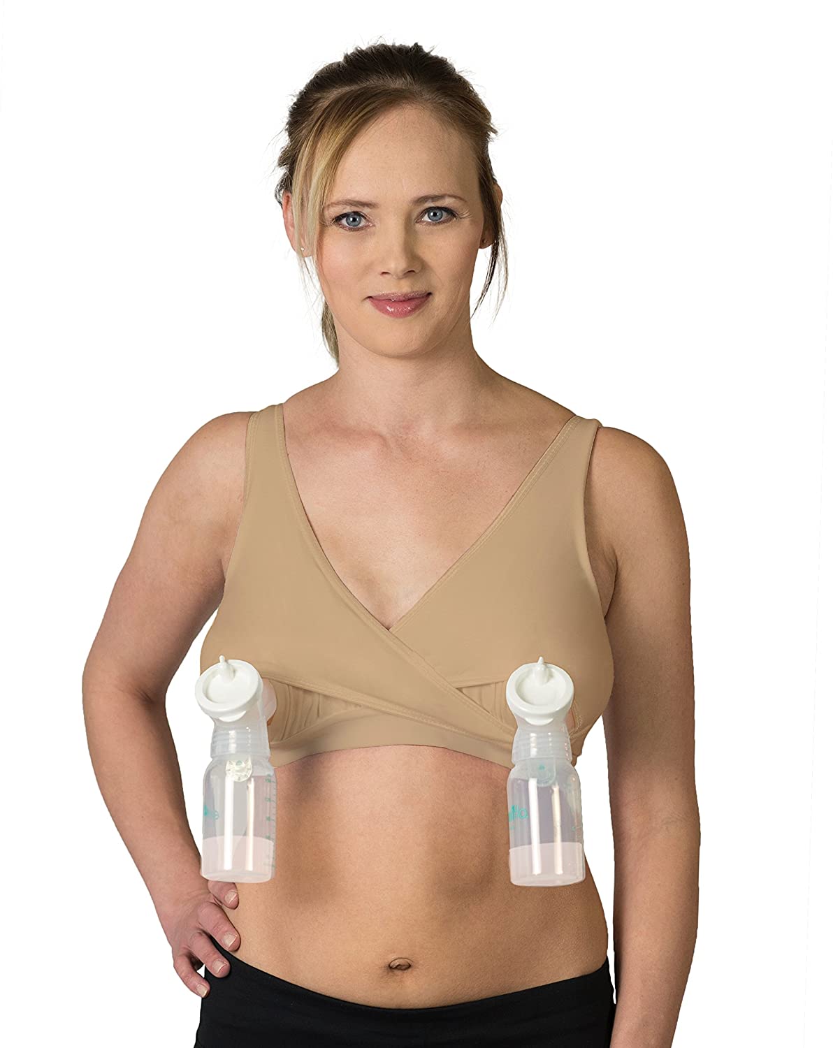 Essential Pump&Nurse Bra, All in One Nursing and Hands Free Pumping Bra, US Company, Nude L