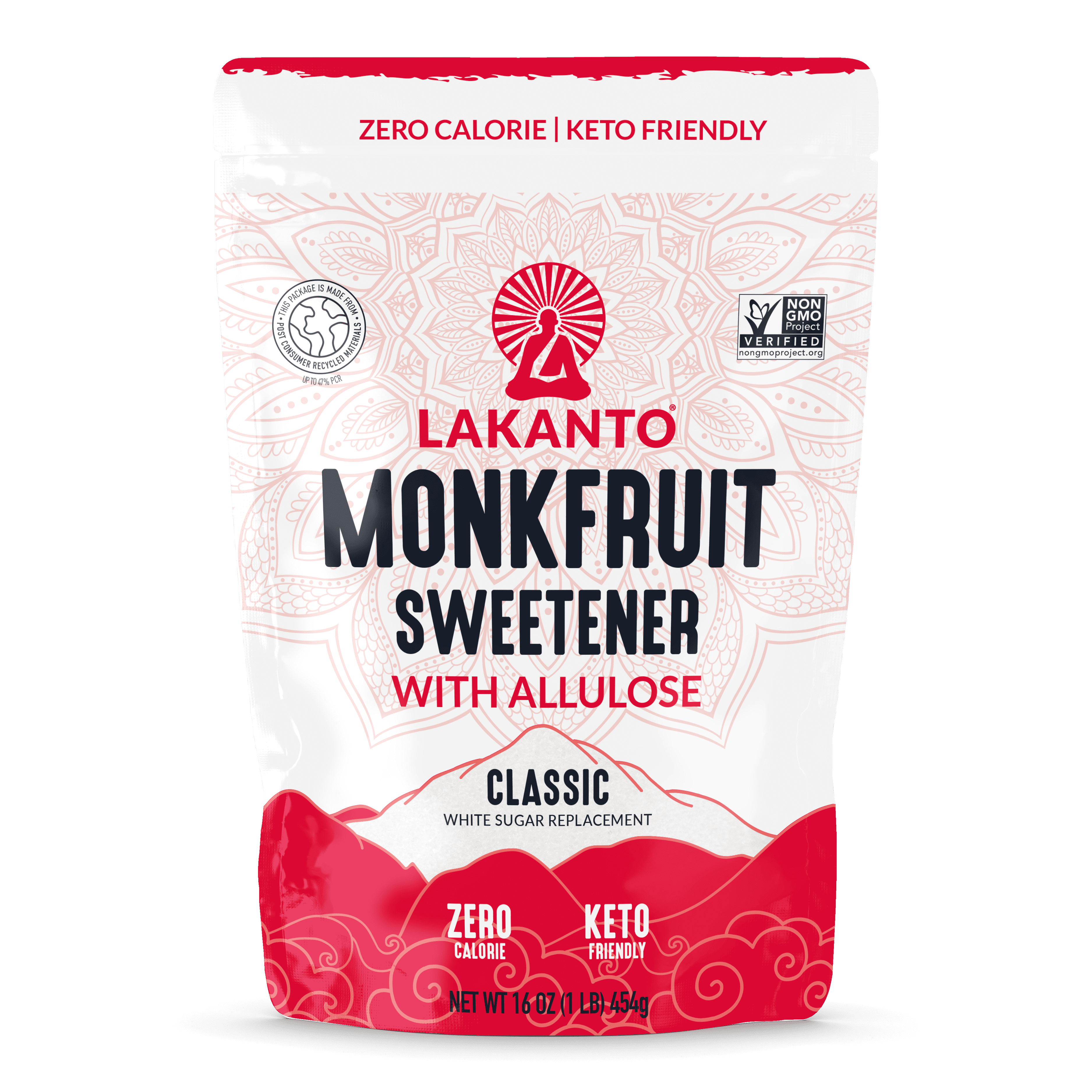 Ideal for baking desserts or other sweet dishes No added flavors or erythritol In the Raw sweetener is certified vegan by vegan.org Sweetness from a fruit Monk fruit blended with other sweeteners Monk Fruit in the Raw sweetener comes in a single pack Suitable for people with diabetes on the advice of a physician