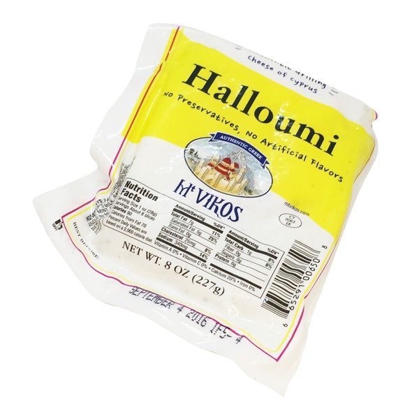 Halloumi is an imported cheese from Cyprus made from cow, goat and sheep milk. Its firm and springy when raw and brined like Feta cheese. Halloumi has a mozzarella-like texture, but is both saltier and stronger in flavor. When you grill or cook with Halloumi it loses its saltiness becomes creamy and tender. This is the one cheese you can grill or fry up beautifully because it has such a high melting point. Halloumi is usually paired with watermelon slices during Cyprian summers. Serve is as an appetizer...