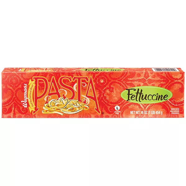 Mueller's Fettucine Pasta, 16 oz 16oz, about 8 servings per container Fettuccine, is a long wide flat ribbon-shaped pasta. It's flat ribbon shape makes it a very versatile shape that holds sauces extremely well, pairs well with full-bodied sauces. Made with 100% North American Durum wheat. Enriched macaroni product Quick and easy pasta in 11-12 minutes. Perfect for making flavorful classic Alfredo Pasta dish or a vivid flavorful Verde' Green Fettuccine pasta dish. Good source of Protein with 7 grams of Protein and Good source of Iron with 10% daily value of iron per serving Suitable for vegetarian, vegan, low-cholesterol, and low-sodium diets Non-GMO and Kosher Certified No preservatives, no artificial flavors, no artificial colors Cholesterol-free, sodium-free, low fat Shelf-stable, Long shelf-life