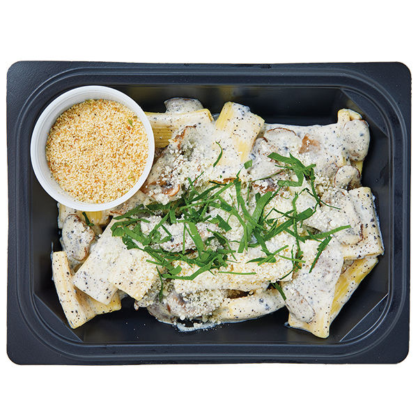 Organic pasta dough: Organic durum wheat semolina, pasteurized organic whole egg, water, organic turmeric. Organic filling: Organic ricotta cheese (organic whey [milk], pasteurized organic milk, salt, citric acid), organic mushrooms (agaricus bisporus), organic breadcrumbs (organic wheat flour, yeast, salt), organic hard cheese (pasteurized organic milk, salt, microbial rennet), salt, natural truffle flavor.