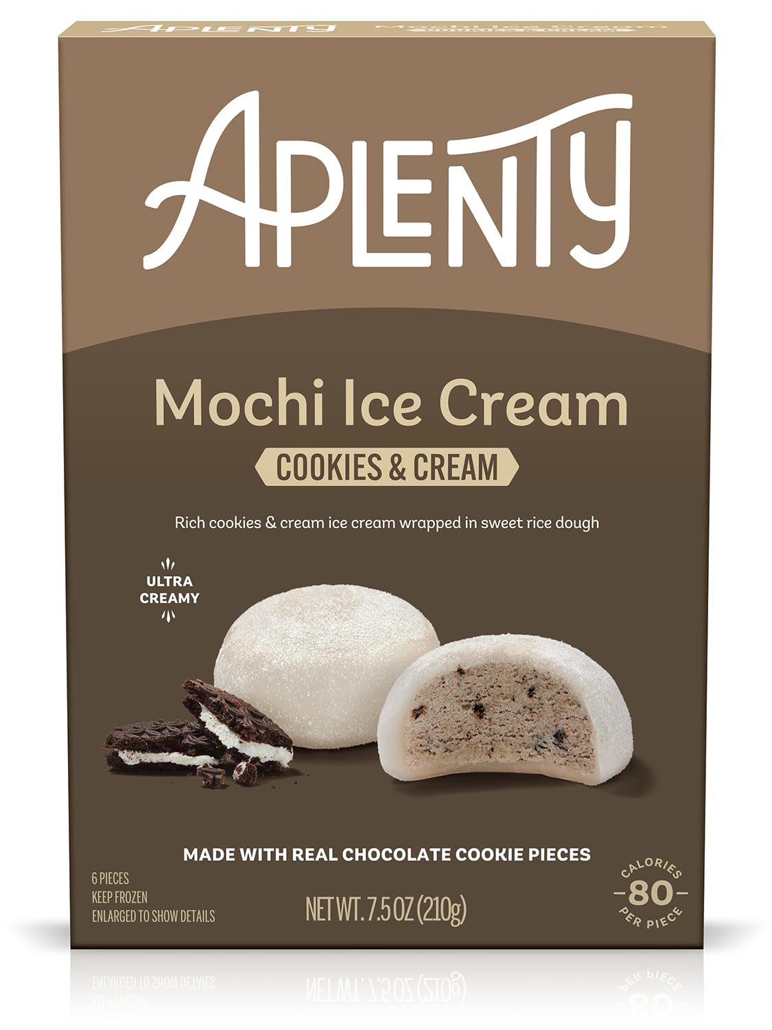 Ice Cream Ingredients: Milk, Cream, Cane Sugar, Chocolate Creme Cookie Pieces (Tapioca Flour, Rice Flour, Cane Sugar, Organic Powdered Sugar, Palm Oil, Cocoa Processed with Alkali, Organic Tapioca Syrup, Cassava Flour, Cocoa, Potato Flour, Sunflower Lecithin, Salt, Natural Vanilla Flavor, Xanthan Gum, Baking Soda), Whey, Nonfat Dry Milk, Natural Flavors, Stabilizer (Guar Gum, Locust Bean Gum). Mochi Dough Ingredients: Cane Sugar, Water, Sweet Rice Flour, Egg Whites, Corn Starch, Enzyme.