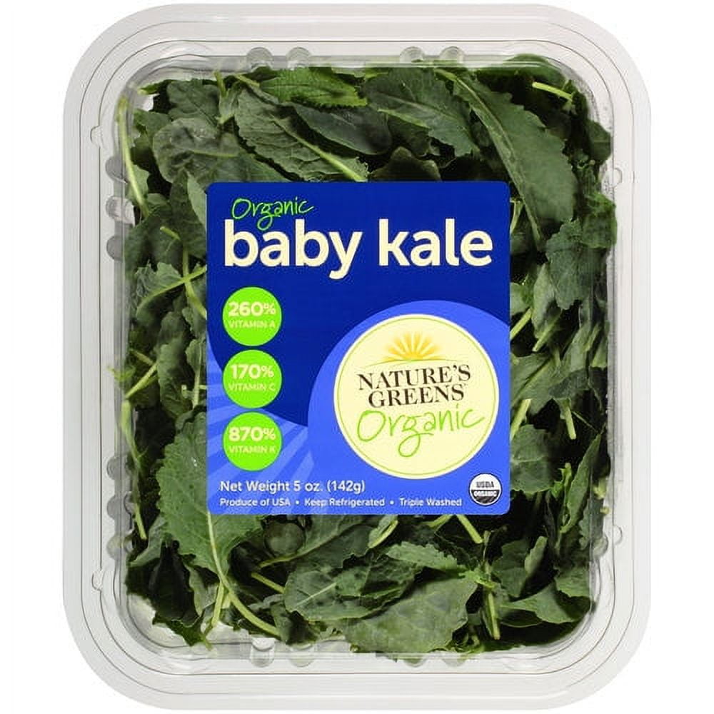 Nature's Greens Organic Baby Kale:USDA organic260% vitamin A170% vitamin C870% vitamin KTriple washedPrepare to fall in love with Nature's Greens Organic Baby Kale and see how good it feels to eat your greens. An excellent source of vitamins A, C and K, Nature's Greens Organic Baby Kale is naturally fat and cholesterol free.