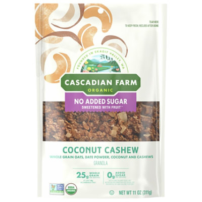 Whole Grain Rolled Oats (Organic), Cane Sugar (Organic), Soy Oil (Organic), Dried Coconut (Organic), Brown Rice Flour (Organic), Chia Seeds (Organic), Oat Syrup Solids (Organic) (Oat Syrup Solids (Organic), Tocopherols), Natural Coconut Flavor, Sea Salt, Molasses (Organic), Natural Vanilla Flavor.