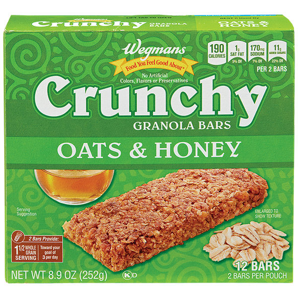 The Original Crunch. Nature Valley Oats 'n Honey Crunchy Granola Bars are a tasty snack made with whole-grain oats and a touch of honey. A portable snack perfect for the pantry, lunch box, and hiking trail. There are no artificial flavors, colors or high fructose corn syrup, and these snack bars contain 22g per serving (at least 48g recommended daily)! It's a breakfast snack bar, an office snack or an on-the-go treat everyone in your household can enjoy. At Nature Valley, we believe that what you...