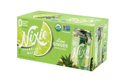 Nixie Sparkling Water Lime Ginger, 12 fl oz 0 Calories, 0 Sugar, 0 Sweeteners, say goodbye to sugar and artificially sweetened drinks. All the flavor with no added sugar or sweeteners of any kind. USDA Certified Organic and Non-GMO Project Verified, which means no synthetic solvents, carriers, or artificial preservatives. Reverse osmosis filtration, this process purifies our sparkling water to remove toxic, forever chemicals, and other impurities. No single-use plasic bottles, aluminum cans help keep plastic out of the beverage aisle and the environment.