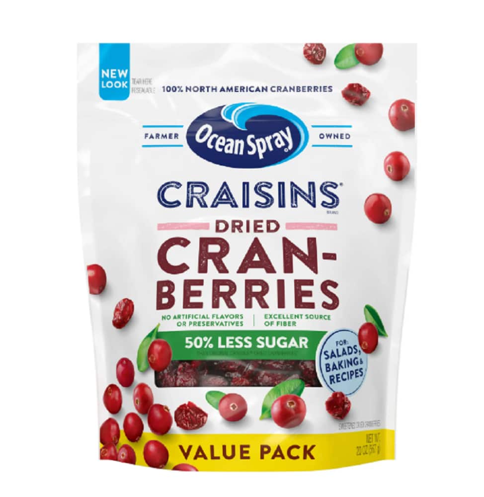 Reduced Sugar Craisins Dried Cranberries offer the sweet and tangy burst of cranberry you know and love – but now with 50% less sugar than Original Craisins Dried Cranberries! And if that wasn’t enough, they still provide 25% of your daily recommended fruit needs and are an excellent source of fiber – all for only 100 calories per serving! Can raisins do all that?