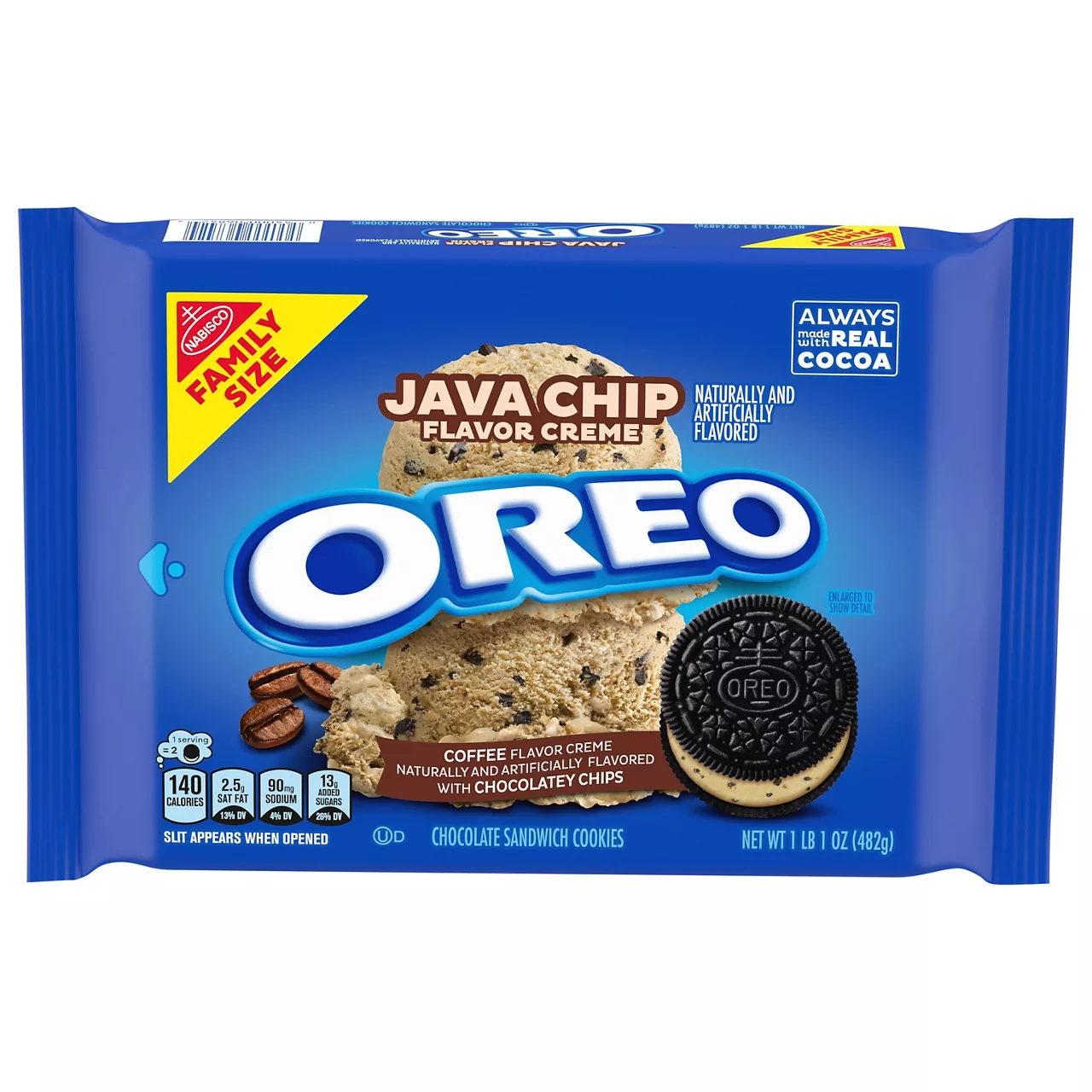 OREO Java Chip Flavored Creme Chocolate Sandwich Cookies, Family Size