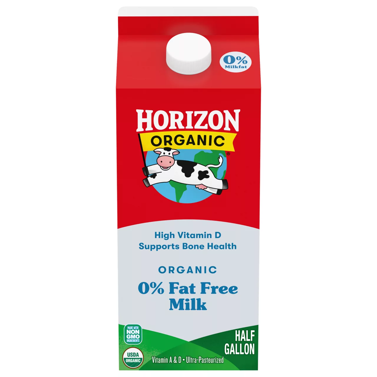 Organic Valley Skim (fat free) milk. Organic Valley milk is ethically sourced from small, organic family farms, where cows roam and graze on lush organic pastures. It's ultra pasteurized & given 57 quality checks to ensure the best organic milk for you and your family. Organic Valley milk is sweet, creamy and loaded with nutrition - including calcium, vitamin A & D, and protein. Our farms never use GMOs, antibiotics, synthetic hormones or pesticides. Certified organic & always non-GMO. Half gallon...