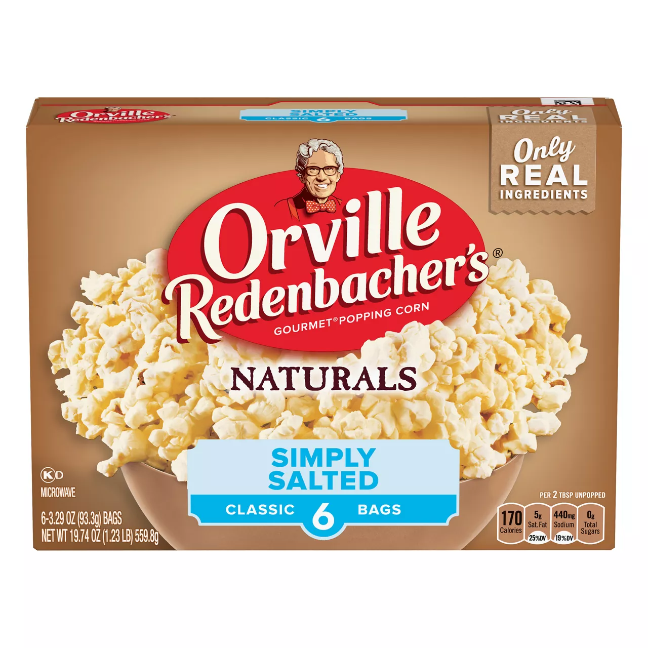 Who says you can't rush perfection? Orville Redenbachers Naturals Simply Salted Popcorn pops up in minutes. Orville Redenbachers Naturals Simply Salted Popcorn has 0 g trans fat per serving and is whole-grain popcorn perfection in its purest form. But what makes our microwave popcorn so perfect? It's an exclusive kernel hybrid that pops up lighter and fluffier than ordinary popcorn. This, combined with our commitment to quality, makes us the #1 popcorn for families everywhere. Enjoy this delicious,...
