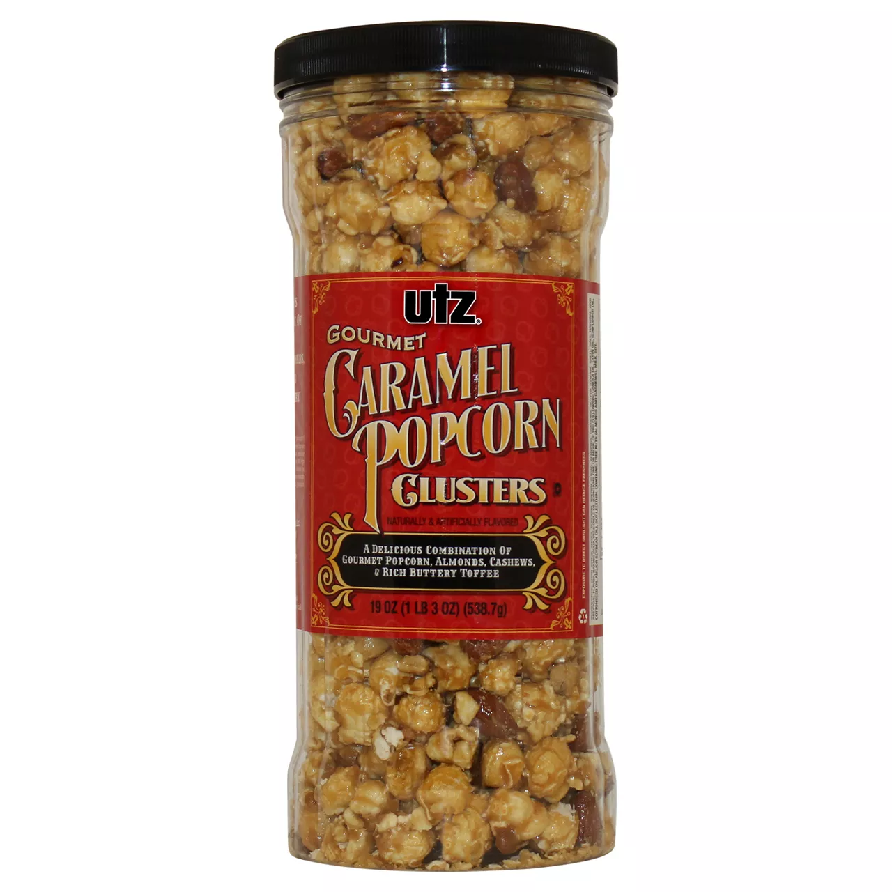 Corn Syrup, Mixed Nuts (Almonds, Pecans), Sugar, Popcorn, Brown Sugar, Butter (Cream, Salt), Less than 2% of: Soybean Oil, Salt, Soy Lecithin. CONTAINS: MILK, SOY, TREE NUTS (ALMONDS, PECANS). MAY CONTAIN: TREE NUTS (CASHEWS, WALNUTS), PEANUTS.