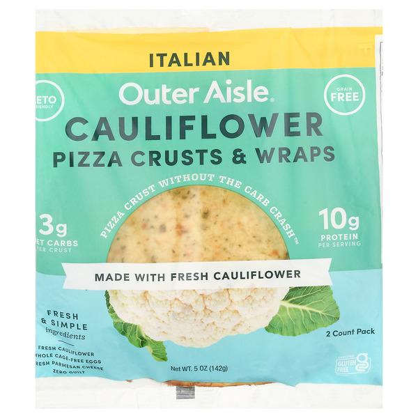 Outer Aisle Cauliflower Italian Pizza Crust. Bring on the pizza, hold the guilt. A delicious blend of Italian herbs and spices baked into our cauliflower pizza crust for a truly authentic (and low carb!) Italian taste. Just add your favorite pizza toppings and enjoy! Can also be used as a wrap or tortilla for delicious quesadillas and breakfast burritos!