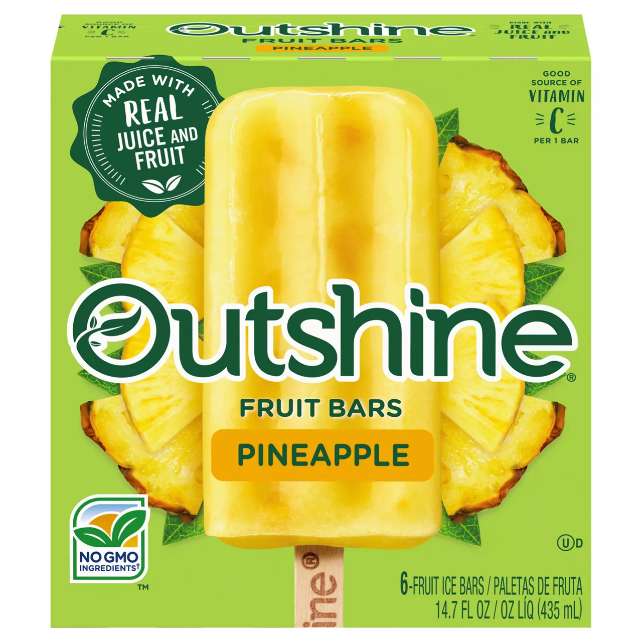 Outshine Pineapple Real Frozen Fruit Bars, Non-GMO, Gluten Free, 6 Ct