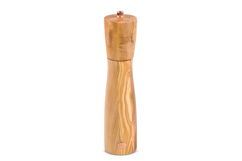 Grinds from the top to help prevent messesThe Pepper Grinder is easily adjustable and rests flat when upside down for easy refilling. The non-corrosive ceramic grinder won't absorb flavors or odors, and is positioned at the top so it won't leave a mess on the table. The Grinder is sold filled with black peppercorns.