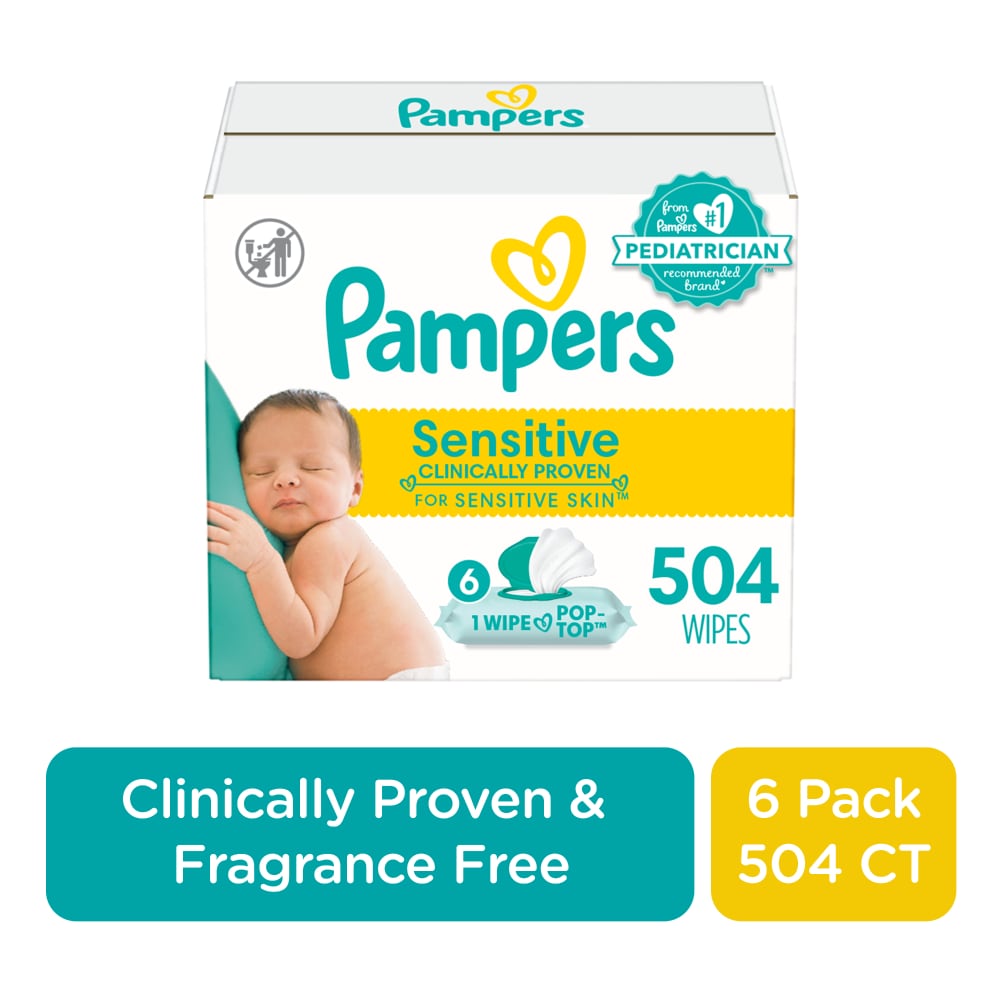 Pampers Baby Wipes Sensitive Perfume Free 1X Pop-Top 56 Count