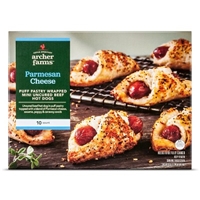 PUFF PASTRY (WHITE WHEAT FLOUR [WHEAT FLOUR ENRICHED (NIACIN, REDUCED IRON, THIAMINE MONONITRATE, RIBOFLAVIN, FOLIC ACID), MALTED BARLEY FLOUR, ASCORBIC ACID {VITAMIN C AS DOUGH CONDITIONER}], WATER, UNSALTED BUTTER (PASTEURIZED CREAM), SALT), UNCURED BEEF HOT DOG, NO NITRATES OR NITRITES ADDED EXCEPT THOSE NATURALLY OCCURRING IN CELERY JUICE POWDER AND SEA SALT (BEEF, WATER, CONTAINS LESS THAN 2% OF THE FOLLOWING: SEA SALT, HONEY, NATURAL SPICES, CELERY POWDER, EVAPORATED CANE JUICE, NATURAL FLAVORINGS, PAPRIKA, SALT), PARMESAN CHEESE (PASTEURIZED PART SKIM MILK, CHEESE CULTURE, SALT, ENZYMES), WATER, PASTEURIZED EGGS (EGGS, CITRIC ACID), SESAME SEEDS, POPPY SEEDS, GRANULATED ONION, CARAWAY SEEDS.