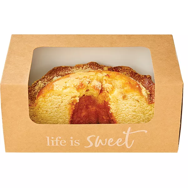 Wheat Flour (Wheat Flour, Malted Barley Flour), Sugar, Eggs, Peaches, Soybean Oil, Sour Cream (Cultured Pasteurized Cream, Nonfat Milk, Enzymes), Water, Modified Food Starch, Peach Flakes (Sugar, Vegetable Oils [Palm, Palm Kernal], Wheat Flour, Peach Powder [Peach Puree, Sugar, Tapioca Flour, Natural Flavor, Citric Acid, Guar Gum], Natural Flavor, Soy Lecithin, Malic Acid, Annatto Extract), Leavening (Calcium Acid Pyrophosphate, Baking Soda, Monocalcium Phosphate), Palm Oil, Natural Flavor, Honey, Mono and Diglycerides, Buttermilk Solids, Salt, Xanthan Gum, Turmeric (color).
