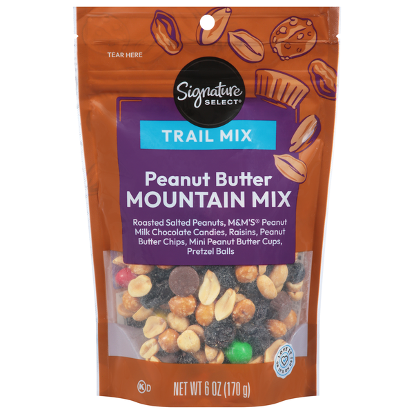 PEANUTS, PEANUT BUTTER CHIPS (SUGAR, HYDROGENATED PALM KERNEL OIL, PARTIALLY DEFATTED PEANUT FLOUR, NONFAT MILK, WHEY POWDER, PEANUT BUTTER [PEANUTS, HYDROGENATED RAPESEED AND COTTONSEED OIL], DEXTROSE, SALT, SOY LECITHIN), RAISINS, M&M'S® PEANUT BUTTER CHOCOLATE CANDIES (MILK CHOCOLATE [SUGAR, COCOA BUTTER, CHOCOLATE, MILK, LACTOSE, PEANUTS, MILKFAT, SOY LECITHIN, SALT, NATURAL FLAVOR], SUGAR, PEANUT BUTTER [PARTIALLY DEFATTED PEANUTS, PALM OIL], HYDROGENATED PALM KERNEL OIL AND/OR VEGETABLE OIL [PALM AND SUNFLOWER OILS], CORNSTARCH, LESS THAN 2% OF : DEXTROSE, CORN SYRUP, NATURAL FLAVOR, SALT, DEXTRIN, COLORS [INCLUDES BLUE 1 LAKE, RED 40, YELLOW 6, YELLOW 5, BLUE 1, RED 40 LAKE, YELLOW 6 LAKE, YELLOW 5 LAKE, BLUE 2 LAKE, BLUE 2], CARNAUBA WAX, PROPYL GALLATE TO MAINTAIN FRESHNESS, GUM ACACIA), PEANUT BUTTER COATED PRETZEL BALLS (PEANUT BUTTER COATING [SUGAR, HYDROGENATED PALM KERNEL OIL, PARTIALLY DEFATTED PEANUT FLOUR, NONFAT DRY MILK, WHEY POWDER, PEANUT BUTTER {PEANUTS, HYDROGENATED RAPESEED AND COTTONSEED OIL}, SALT, SOY LECITHIN], PRETZEL BALLS [ENRICHED WHEAT FLOUR {WHEAT FLOUR, NIACIN, REDUCED IRON, THIAMINE MONONITRATE, RIBOFLAVIN, FOLIC ACID}, VEGETABLE OIL {MAY CONTAIN ONE OR MORE OF THE FOLLOWING: CANOLA, CORN, SOYBEAN}, SALT, CORN SYRUP, BAKING SODA, YEAST]), MINI PEANUT BUTTER CUPS (SUGAR, COCOA BUTTER, PALM KERNEL OIL, CHOCOLATE, MILK, PARTIALLY DEFATTED PEANUT FLOUR, NONFAT MILK, PEANUTS, SALT, SOY LECITHIN, VANILLA EXTRACT), VEGETABLE OIL (PEANUT, COTTONSEED, SOYBEAN AND/OR SUNFLOWER SEED).,' '