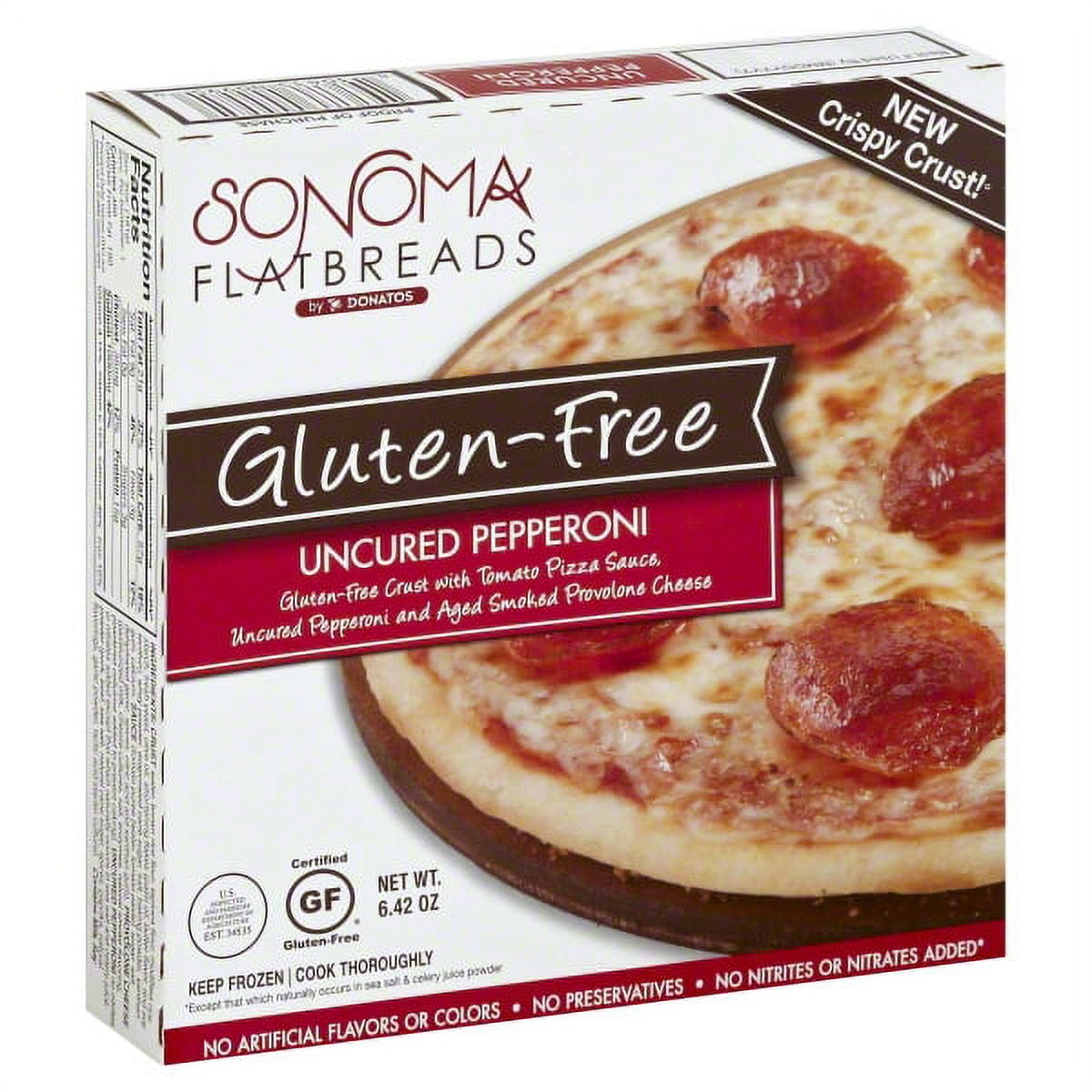 Ingredients: White Naan (Enriched Wheat Flour [Wheat Flour, Niacin, Reduced Iron, Ascorbic Acid Added As A Dough Conditioner, Thiamine Mononitrate, Riboflavin, Microbial Enzyme, Folic Acid], Buttermilk [Nonfat Milk, Dry Buttermilk, Bacterial Culture], Shredded Mozzarella Cheese (Pasteurized Milk, Cheese Culture, Salt, Microbial Enzymes, Potato Starch, Powdered Cellulose [anti-caking agent]), Water, Soybean Oil, Cultured Wheat Flour, Eggs, Sugar, Baking Powder [Sodium Acid Pyrophosphate, Baking Soda, Cornstarch, Monocalcium Phosphate], Sea Salt, Ghee [Clarified Butter], Wheat Gluten, Dextrose, Dextrin, Carrot Fiber, Yeast), Pizza Sauce (Tomatoes, Extra Virgin Olive Oil, Salt, Oregano, Black Pepper, Citric Acid, Granulated Garlic), Pepperoni (Pork, Beef, Salt, Contains 2% or Less of Cane Sugar, Dextrose, Natural Flavorings [including Celery Powder], Cultured Celery Juice, Sea Salt, Spices, Oleoresin of Paprika, Cherry Powder, Lactic Acid Starter Culture).