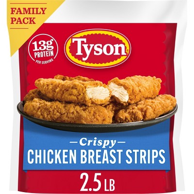 From freezer to table in minutes - PERDUEî Breaded Crispy Chicken Strips (26 ounces) are frozen and fully cooked for your convenience. Made with only white meat chicken breast strips, no fillers, and coated with a crispy, seasoned breading. They are an easy, flavorful salad topping, pasta topping, or great served on their own. Packed with 12g protein per serving (3 oz), these crispy strips make dinner easy. Simply heat what you need and store the rest for later! At PERDUE, we're hungry for better...