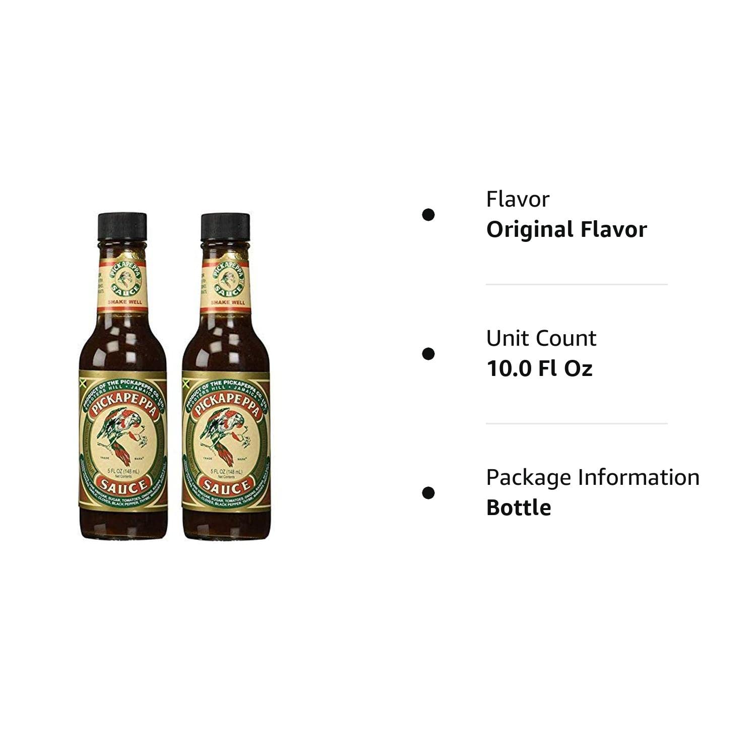 For soups, fish, meat dishes, game roasts. For seafoods, cheese dishes, salads, gravies etc. Original quality. Pickapeppa Company was established in 1921. This sauce is aged to perfection in oak barrels and is made from the finest tropical fruits and spices. It contains no artificial colouring, flavouring of preservative. Gluten free. Tel: 504-834-1395. www.pickapeppajamaica.com. www.pickapeppa.com.