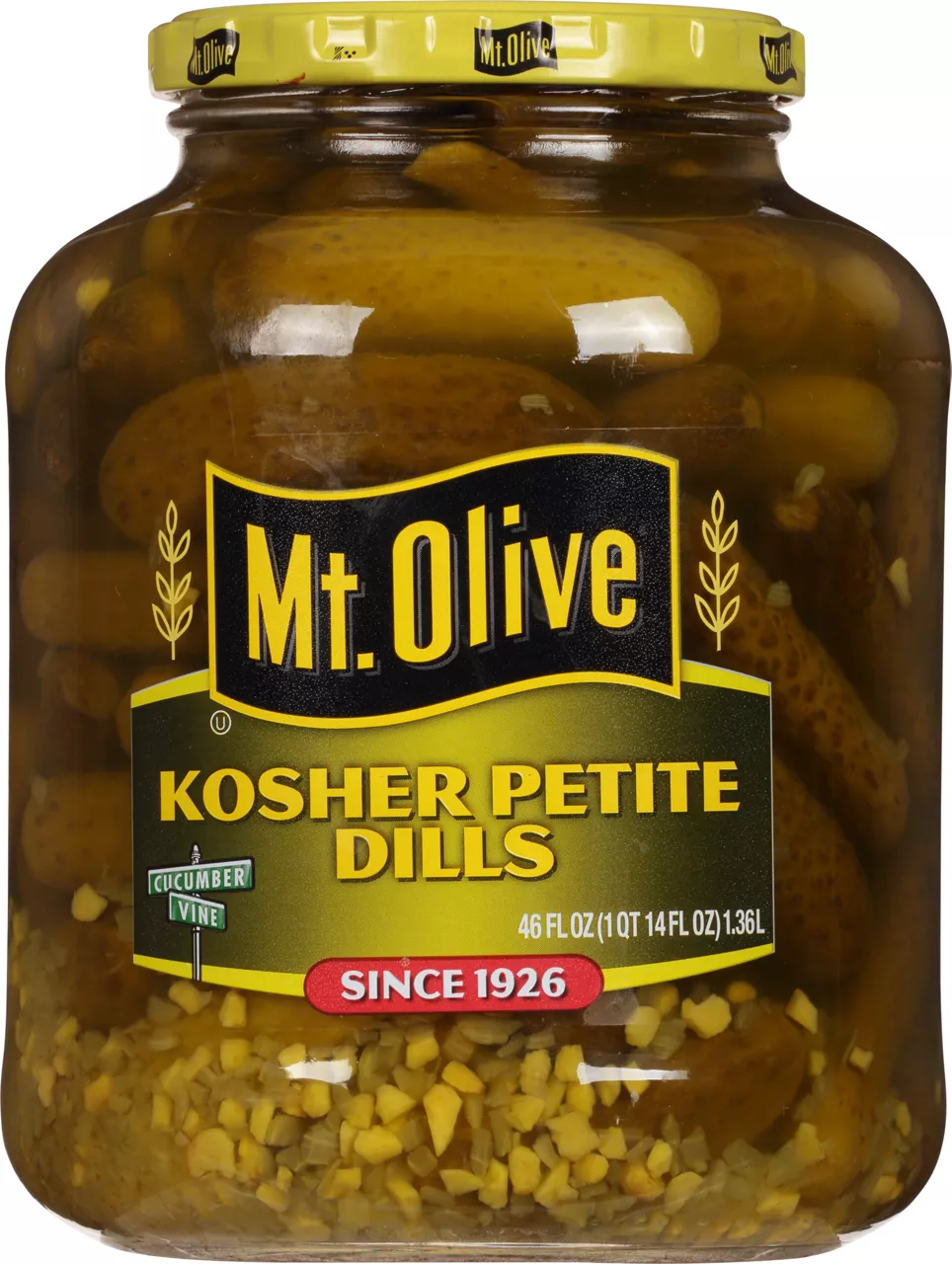 Mt. Olive Petite Snack Cruncher Kosher Dill pickles offer so much fresh garlic flavor in a crunchy petite pickle! The small size that packs a huge flavor punch, Mt. Olive Petite Snack Cruncher Kosher Dills deliver the classic Kosher Dill flavor you love from Mt. Olive. Made from small baby cucumbers picked at their peak, these Petite Snack Crunchers are tasty, delicious and irresistible. Our crunchy, flavorful pickle goodness comes from the corner of Cucumber & Vine in our hometown in North Carolina....