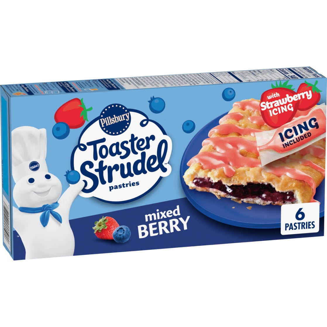 Pillsbury Toaster Strudel Mixed Berry Frozen Pastries with Strawberry Icing, 6 Ct
