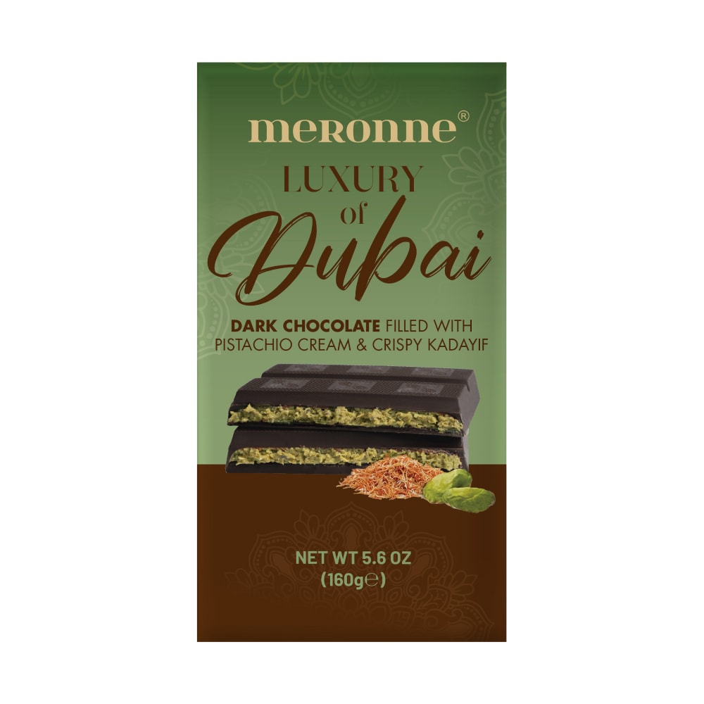 Meronne® Luxury of Dubai Dark Chocolate Filled with Pistachio Cream & Crispy Kadayif