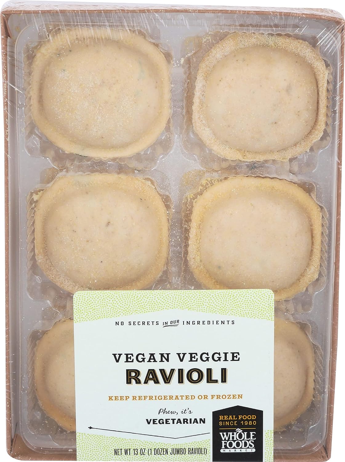 FILLING: MUSHROOM RAGOUT (PORTOBELLO MUSHROOM, TOMATOES [TOMATOES, TOMATO JUICE, SALT, CALCIUM CHLORIDE, CITRIC ACID], TOMATO PASTE, CARROTS, CELERY, ONIONS, EXTRA VIRGIN OLIVE OIL, GARLIC, PORCINI MUSHROOM, SALT, PARSLEY, BLACK PEPPER, THYME), POLENTA (WATER, POLENTA, BUCKWHEAT FLOUR, SALT), BREADCRUMBS (WHEAT FLOUR, SUGAR, YEAST, SALT), PLANT & VEGETABLE FIBER (CELLULOSE [FIBER], PSYLLIUM [HUSK]), TRUFFLE FLAVORED OIL (CANOLA OIL, NATURAL WHITE TRUFFLE EXTRACT, WHITE TRUFFLE FLAVOR), PARSLEY. PASTA: WHEAT FLOUR, WATER, BETA-CAROTENE (COLOR).' '