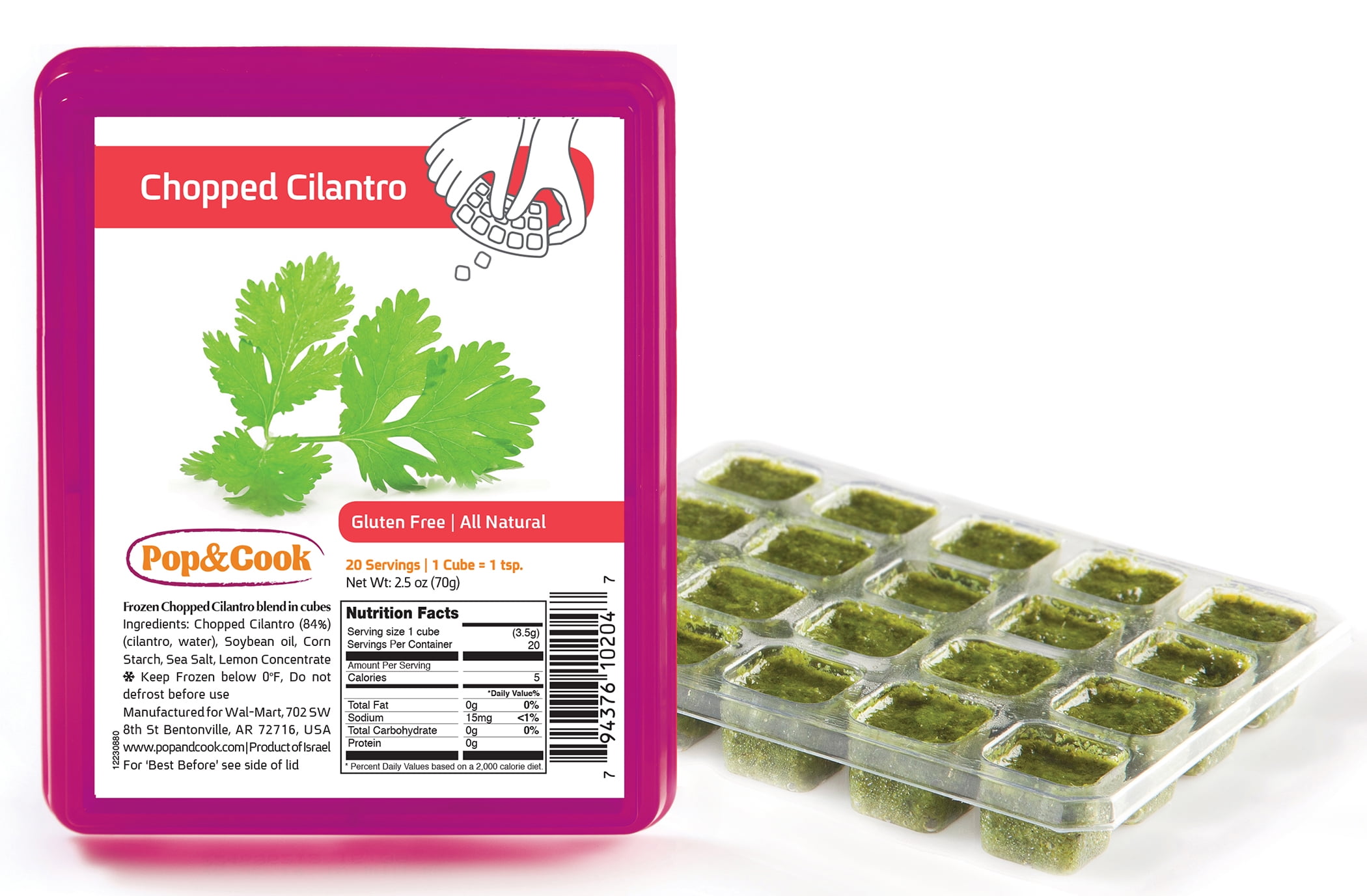 Chopped cilantro cubes not only provide great flavor, but may aid the digestive system and even headaches Great for seasoning salads, fish, Mexican salsas, and even Indian cuisine Part of Pop & Cook's signature line of delicious, pre-portioned seasoning cubes Gluten-free and made with zero preservatives Ingredients: chopped cilantro (cilantro, water), canola oil, corn starch, sea salt, lemon concentrate
