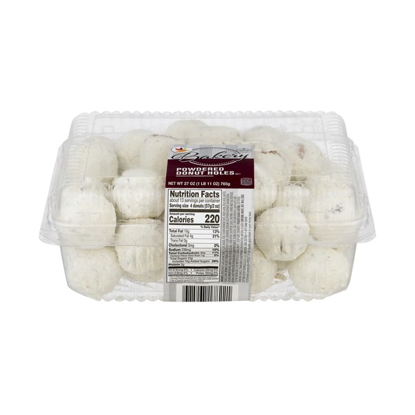 Donut (Enriched Wheat Flour [Wheat Flour, Niacin, Reduced Iron, Thiamine Mononitrate, Riboflavin, Folic Acid], Water, Sugar, Vegetable Oil [Canola and/or Soybean Oil], Dextrose, Nonfat Dry Milk, Leavening [Sodium Acid Pyrophosphate, Sodium Bicarbonate, Monocalcium Phosphate], Soy Flour, Egg Yolk, Salt, Wheat Starch, Wheat Germ, Mono and Diglycerides, Soy Lecithin, Beta Carotene, Natural Flavor, Enzymes), Sugar Coating (Dextrose, Corn Starch, Palm Oil Shortening, Titanium Dioxide [color], Natural Flavor).