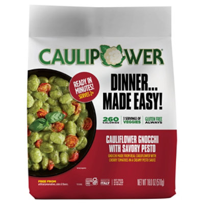 WATER, DEHYDRATED POTATO FLAKES (POTATOES, MONO AND DIGLYCERIDES OF FATTY ACIDS, NATURAL FLAVOR), WHEAT FLOUR, POTATO STARCH, BASIL PESTO (BASIL, SUNFLOWER SEED OIL, PECORINO ROMANO CHEESE [SHEEP'S MILK, SALT], POWDERED WHEY, SALT, POTATO FLAKES, POTATOES, MONO AND DIGLYCERIDES OF FATTY ACIDS, LACTIC ACID, GARLIC, RICE FLOUR, SALT, LACTIC ACID, SORBIC ACID [PRESERVATIVE]).