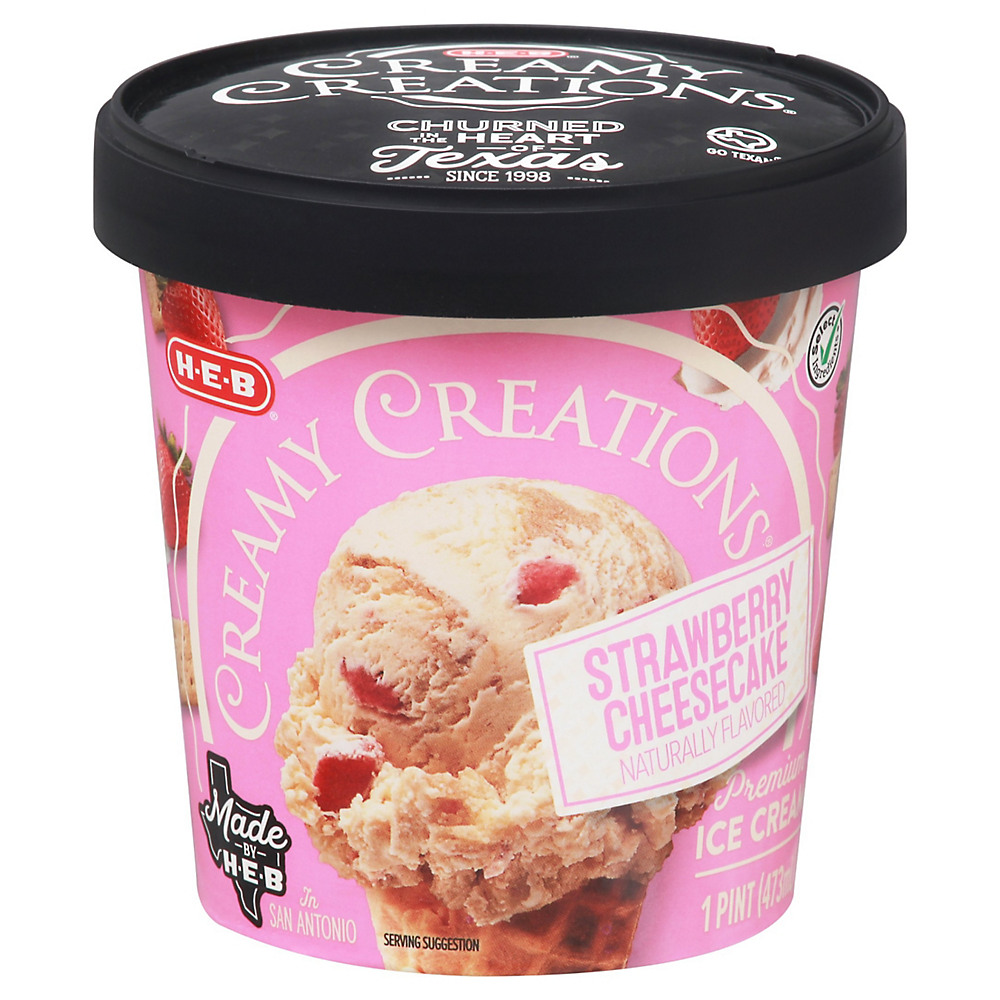 Cheesecake Flavored Ice Cream: Milk, Cream, Sugar, Corn Syrup, Whey Protein Concentrate, Skim Milk, Cream Cheese Base: (Cream Cheese [Pasteurized Milk & Cream, Cheese Culture, Salt, Carob Bean Gum and/or Xanthan Gum and/or Guar Gum], Sugar, Corn Syrup, Water, Corn Starch, Titanium Dioxide [Color], Natural Flavor), Propylene Glycol Monoesters, Guar Gum, Cellulose Gel, Mono and Diglycerides, Calcium Sulfate, Cellulose Gum, Carrageenan, Graham Cracker Swirl: Graham Cracker Crumb (Unbleached Wheat Flour, Graham Flour, Sugar, Palm and Palm Kernel Oil, Molasses, Honey, Salt, Sodium Bicarbonate), Cottonseed Oil, Confectioners Sugar, Coconut Oil, Salt, Soy Lecithin, Natural Flavor, Cinnamon, Strawberries: Strawberries, Sugar, Water, Corn Starch, Locust Bean Gum, Fruit and Vegetable Juice for Color (Black Currant, Carrot), Citric Acid, Potassium Sorbate and Sodium Benzoate as Preservatives.