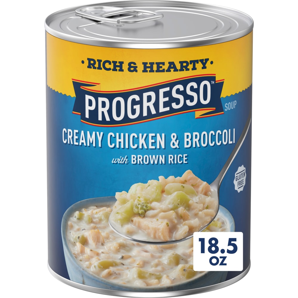 Ingredients: Chicken Broth, Carrots, Tomatoes, Cooked White Chicken Meat, Celery, Rice, Modified Food Starch. Contains less than 1% of: Corn Protein (hydrolyzed), Water, Salt, Potassium Chloride, Carrot Puree, Flavor, Onion Powder, Sugar, Tomato Extract, Soy Protein Isolate, Garlic Powder, Sodium Phosphate, Dried Parsley, Calcium Chloride, Citric Acid, Spice, Maltodextrin, Natural Flavor, Beta Carotene (color).