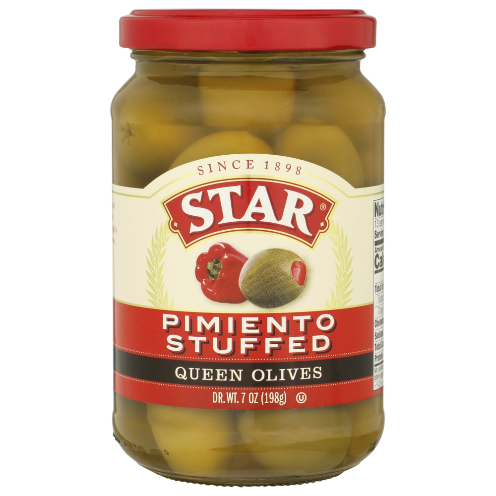 The Queen-Size Spanish Olives from market pantry⢠are perfect for adding an extra dash of savory flavor to any dish. The jar contains juicy green, whole Spanish olives that are pitted and pimiento-stuffed for a burst of flavor. The queen-size olives make a welcome addition to any salad, vegetable platter, sandwich or drink. These ready-to-eat olives are also great on their own as a snack or simple appetizer, and they can even be added to your martini for a classic cocktail.
