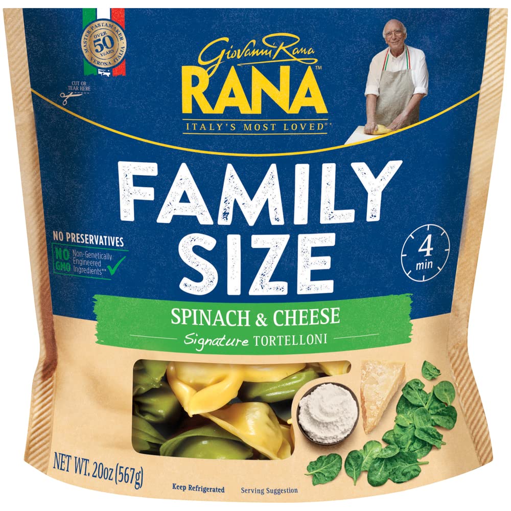 Filling (Ricotta (Whey, Milk, Cream, Vinegar), Mascarpone Cheese (Pasteurized Milk, Pasteurized Cream, Citric Acid), Parmesan Cheese (Pasteurized Cultured Part-Skimmed Milk, Salt, Enzymes), Chicory Root Fiber, Bread Crumbs (Wheat Flour, Yeast, Salt), Sunflower Oil, Vegetable Fiber, Corn Starch and Potato Fiber, Potato Starch, Whey, 2% or Less of Garlic, Salt, Natural Flavors, Spice). Pasta (Durum Wheat Flour, Eggs, Water, Spinach).